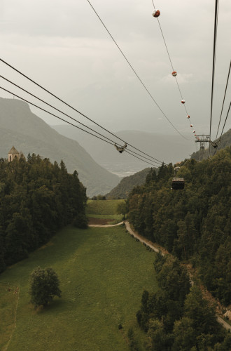 Eine der drei Seilbahnen führt auf den Ritten – Bozens Sommerfrischberg. Exakt zwölf Minuten und nicht länger dauert die Fahrt mit 950 m Höhendifferenz von der Tal- zur Bergstation in Oberbozen. Einmal oben ist die Aus- und Fernsicht auf die recht nah scheinenden Dolomitengipfel grandios und die Wanderungen zu den Erdpyramiden oder auf das Rittner Horn auf 2.260 Metern freilich ein Erlebnis.