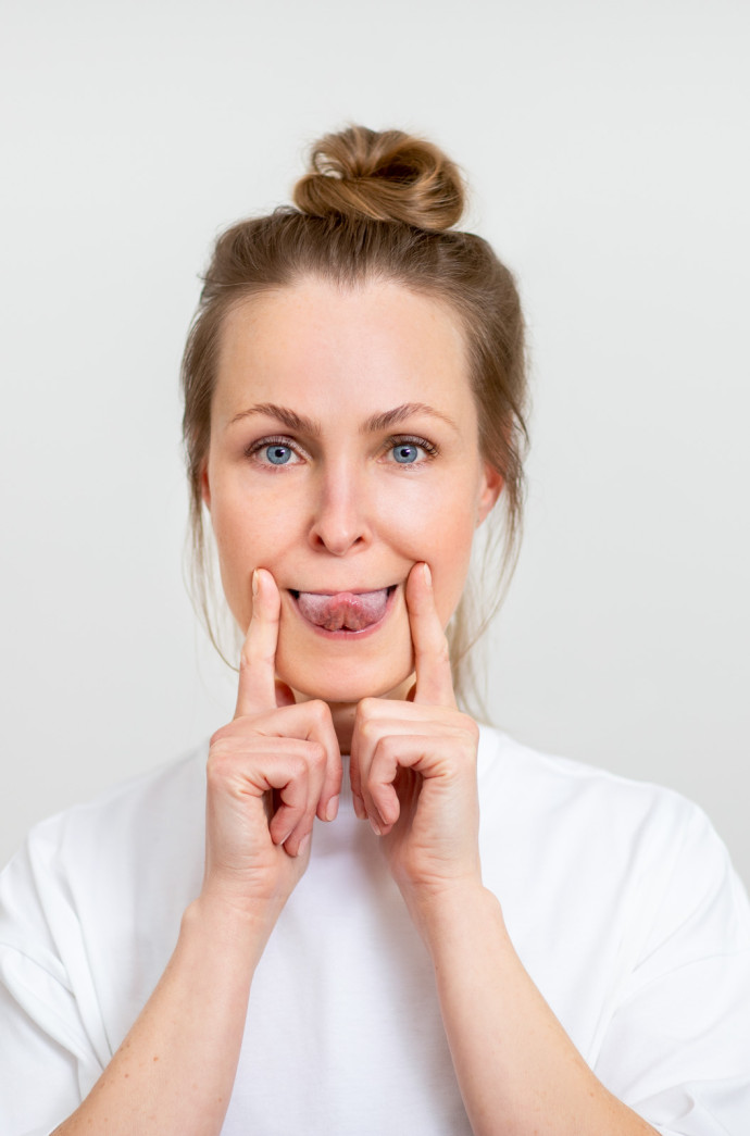 Healthy Aging: Das Training lässt dein Gesicht definierter, straffer und jünger aussehen, ganz ohne den Einsatz von teuren Kosmetikprodukten, Botox oder Fillers. Es wirkt ungewollten Falten entgegen, regt die Durchblutung an und bringt ein Gefühl der Entspannung mit sich.