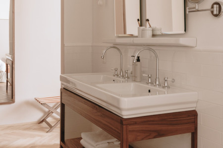 The charm of bygone days and a contemporary breath of fresh air: The Grand Suite, with its king-size bed and lounge furniture, separate living room and spacious bathroom, embraces you after a day’s adventure and re-energises for a night on the town or at the bar.