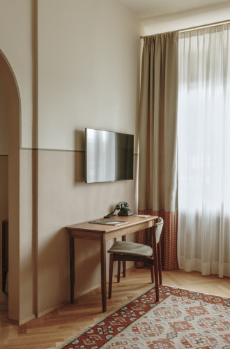 Queen-size bed, lounge chair and sofa. Everything is there; everything is possible – plenty of space for all. Have sweet dreams in the suite and, in the morning, gracefully descend the stone stairs to breakfast. The only thing better is floating.