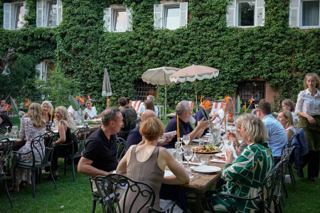 A summer evening with authentic Caribbean kitchen. Enjoy a long table dinner with new and old friends in the garden of the Parkhotel Mondschein.