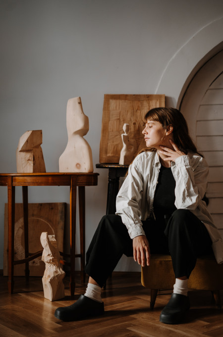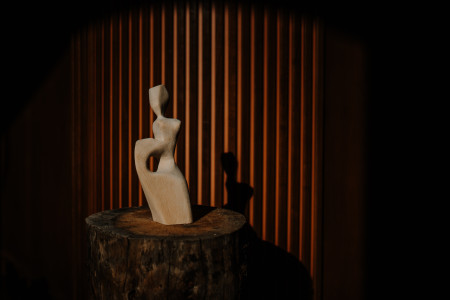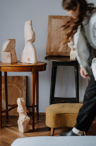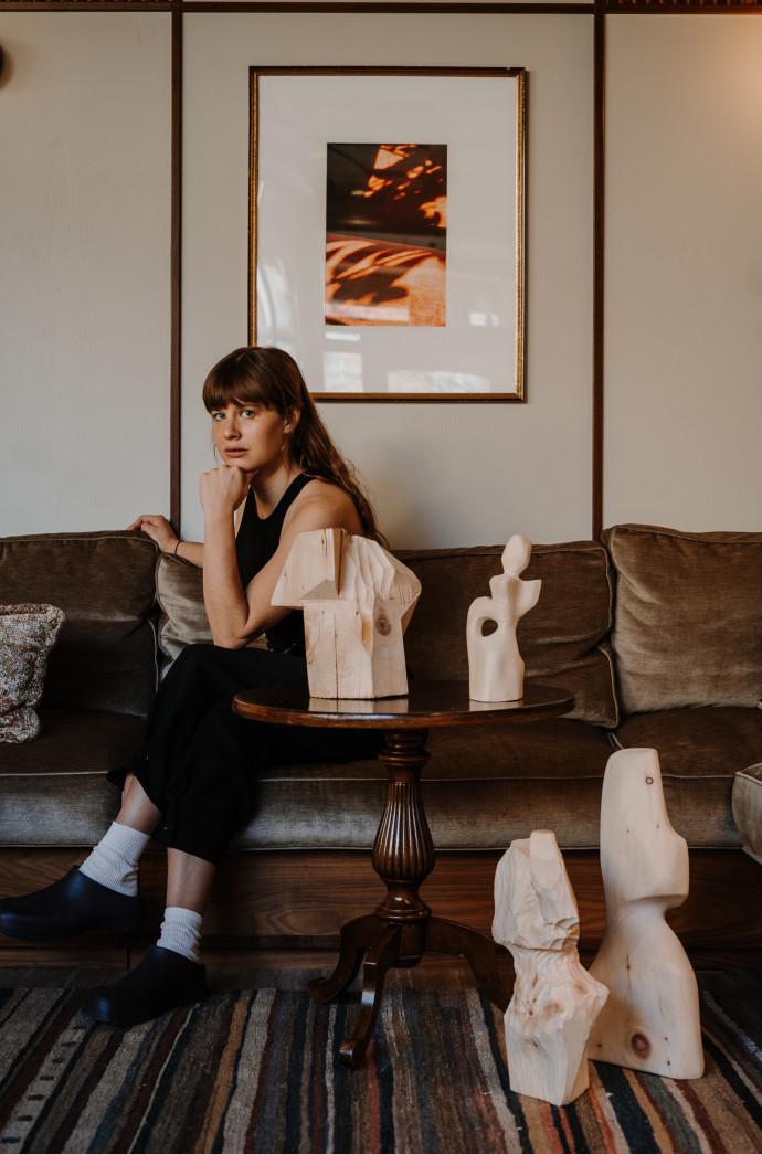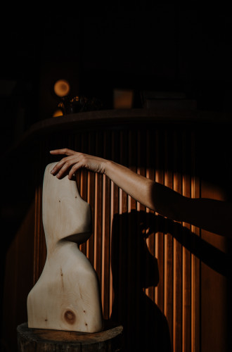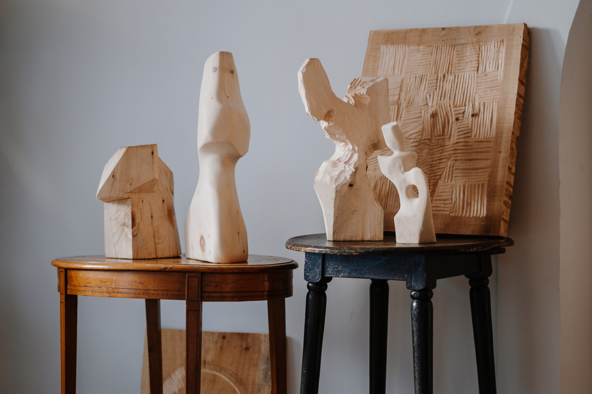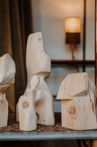 I always approach my art starting with the material and how it connects to a feeling. After visiting Mondschein a few times, it was the warmth and calmness and peace that I always left with, and that’s what made me long to come back. So, for me, the natural choice for making sculptures for the space was wood. It’s a warm and soft material, that’s able to tell a story through a feeling.
